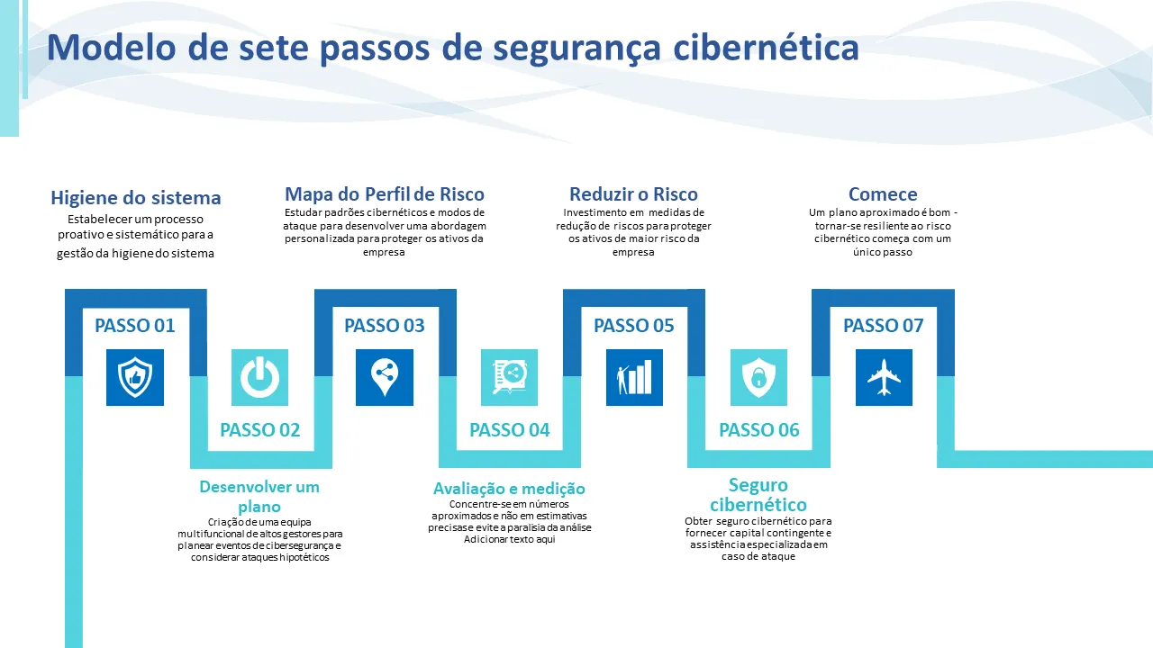 - Layout da estrutura de segurança cibernética em sete etapas para planejamento estratégico
