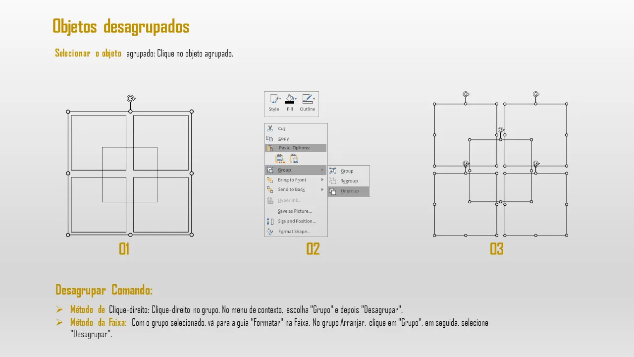 Explicação do modelo de PowerPoint em destaque em 3 etapas